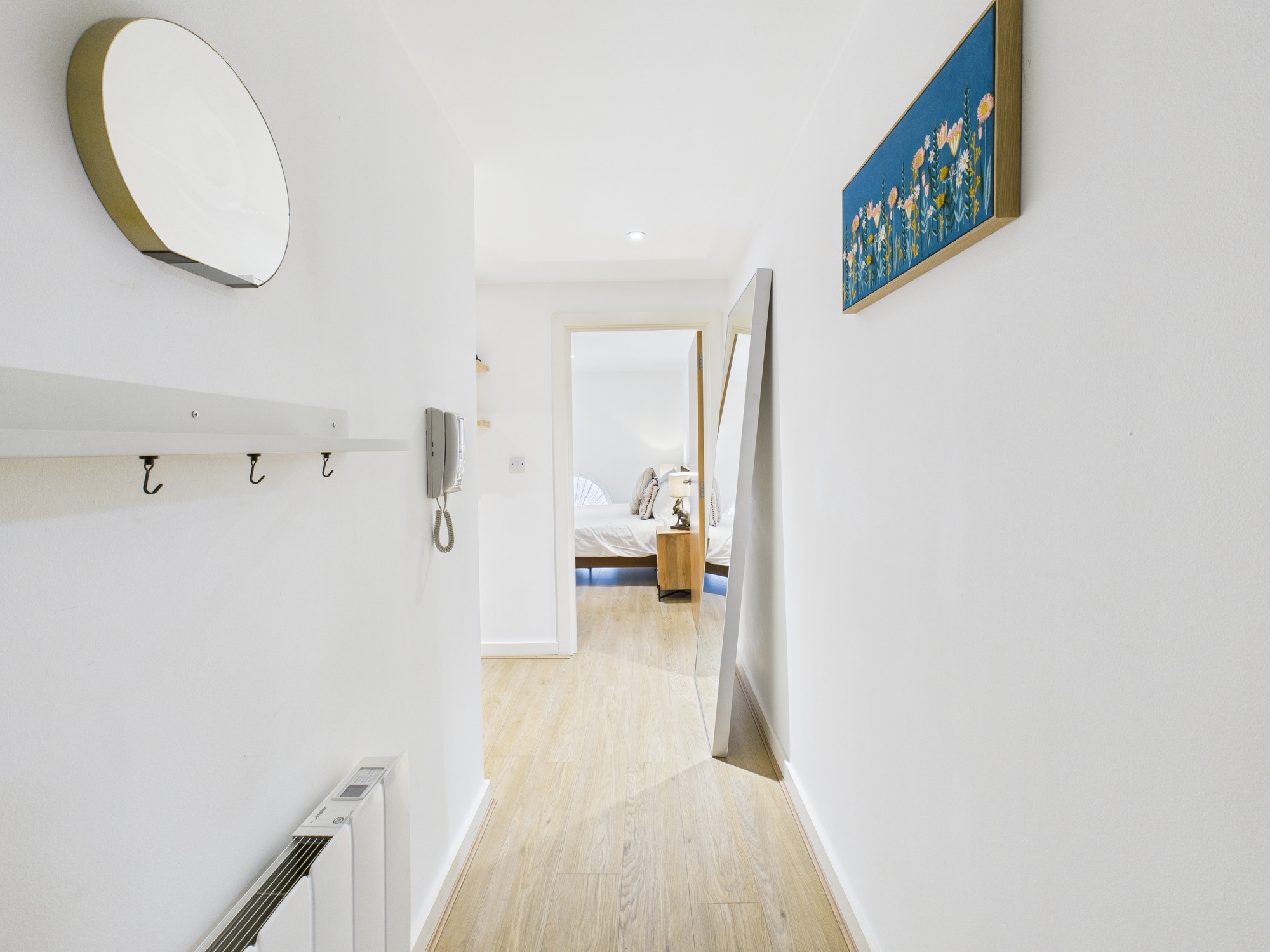 Set within a beautifully restored former pump house, The Olive Apartment is a bright, modern one-bedroom home in a quiet gated development by the Royal Docks. Thoughtfully styled with light tones and natural textures, the apartment offers a calm, welcoming base for both business and leisure stays in East London.