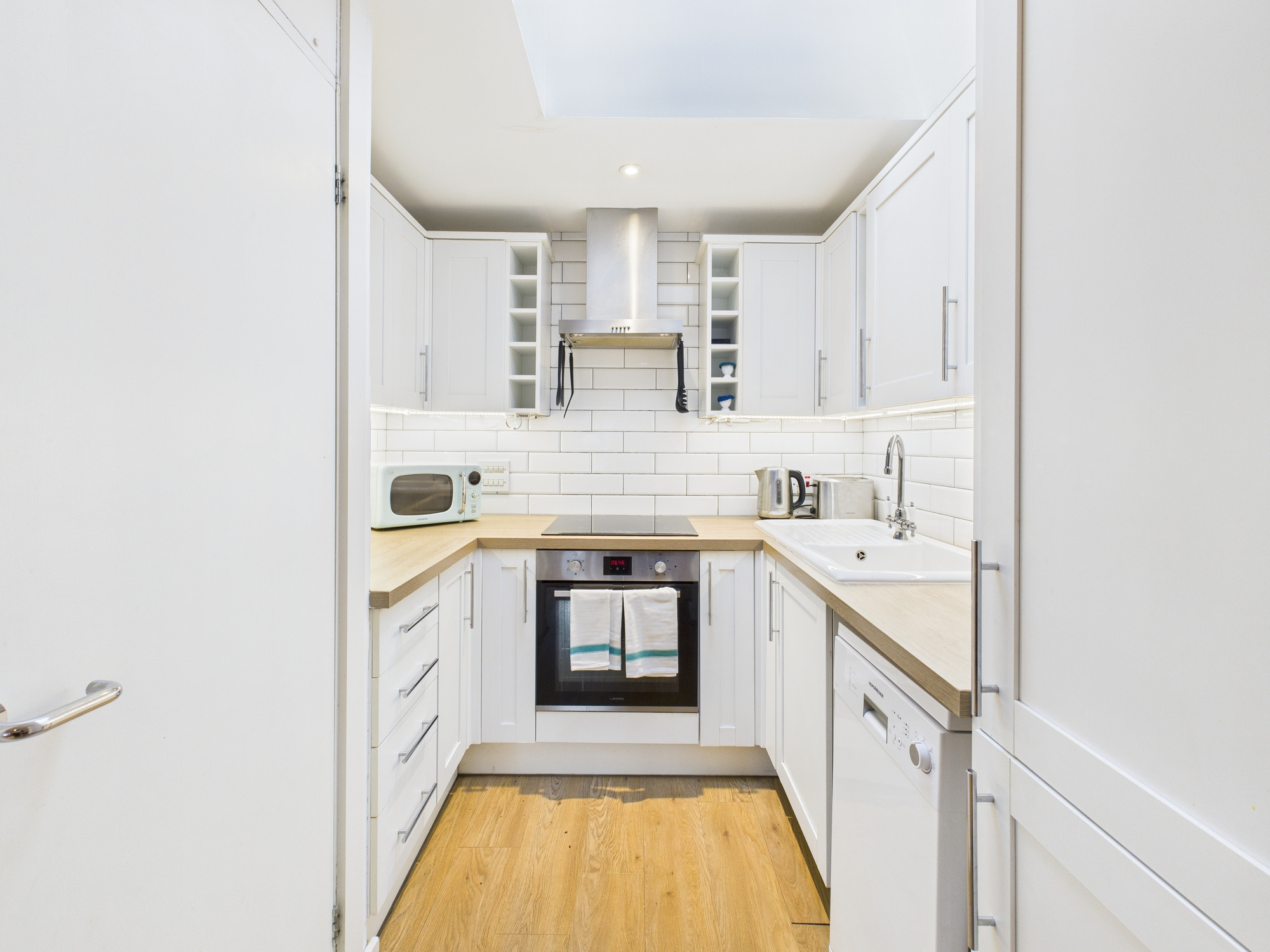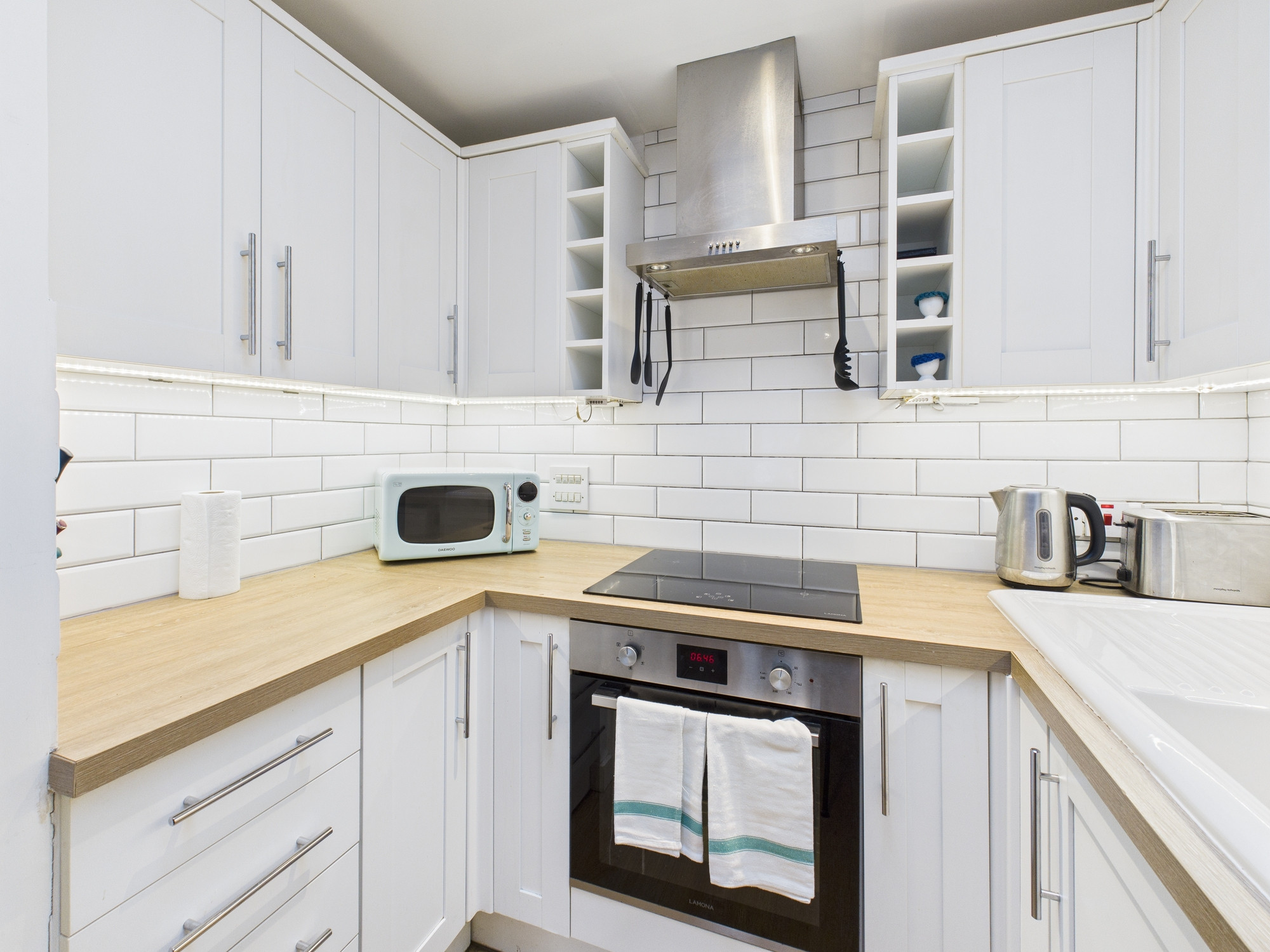 The modern kitchen is fully equipped for short or longer stays and includes an oven, hob, dishwasher, washer/dryer, toaster, kettle, and all essential cookware. Tea, coffee, and basic condiments are provided so you can settle in straight away.
